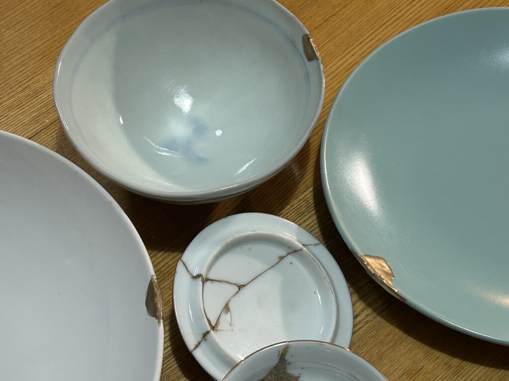 どうせならと、欠けていたほかのお皿や茶碗もまとめて挑戦!
